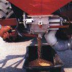 Центральне дозування – це серце системи. Через клітинну шестерню дозуючого пристрою розхід висіваючої маси проходить в строго визначеній кількості. Краї клітинної шестерні захищені резиновим ущільненням 2А і нейлонової щітки 2Б; при цьому насіннєвий матеріал не підпадає під пошкодження і не висипається при трясці. Плавне, поступове регулювання норми посіву здійснюється через переміщення заслонок секційної котушки 2 дозуючого апарату. Насіння, яке пройшло дозатор, попадає в інжектор 3, переміщається з потоком повітря від вентилятора 1, транспортується вверх до розподільника 4, рівномірно змішується в трубі і поступає далі до сошників. За допомогою розподільника 5 можна змінювати ширину міжрядь.