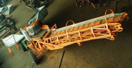 Має приймальний бункер з підйомними бортами, підйомний транспортер, телескопічний вивантажний транспортер, дистанційний пульт управління на усі операції. Між підйомним і телескопічним транспортерами встановлений стрічковий транспортер, що знижує висоту перепаду продукції.