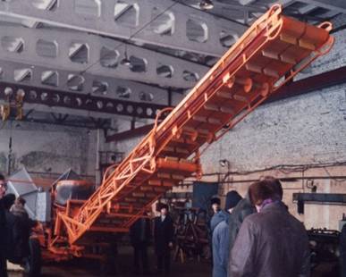Телескопічний транспортер скорочує кількість переїздів завантажувача по сховищу і забезпечує укладання продукції в сховищі шириною 18 метрів з сіткою колон 6х6 метрів з центру сховища без додаткового маневрування, що підвищує його продуктивність за одну зміну роботи. Полотна транспортерів - безкінечні, без ланцюгів.